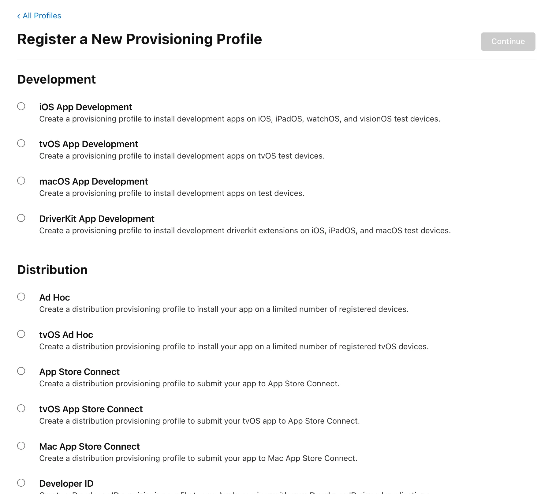 - Certificates, Identifiers & Profiles