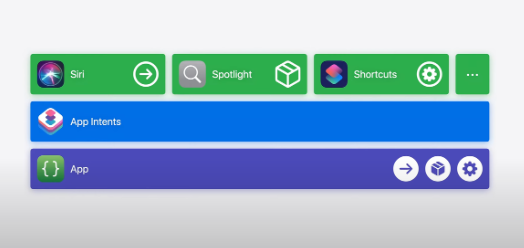 다음 이미지처럼 App Intents는 앱의 기능을 외부에서 사용하는데 공통적인 인터페이스라고 볼 수 있다